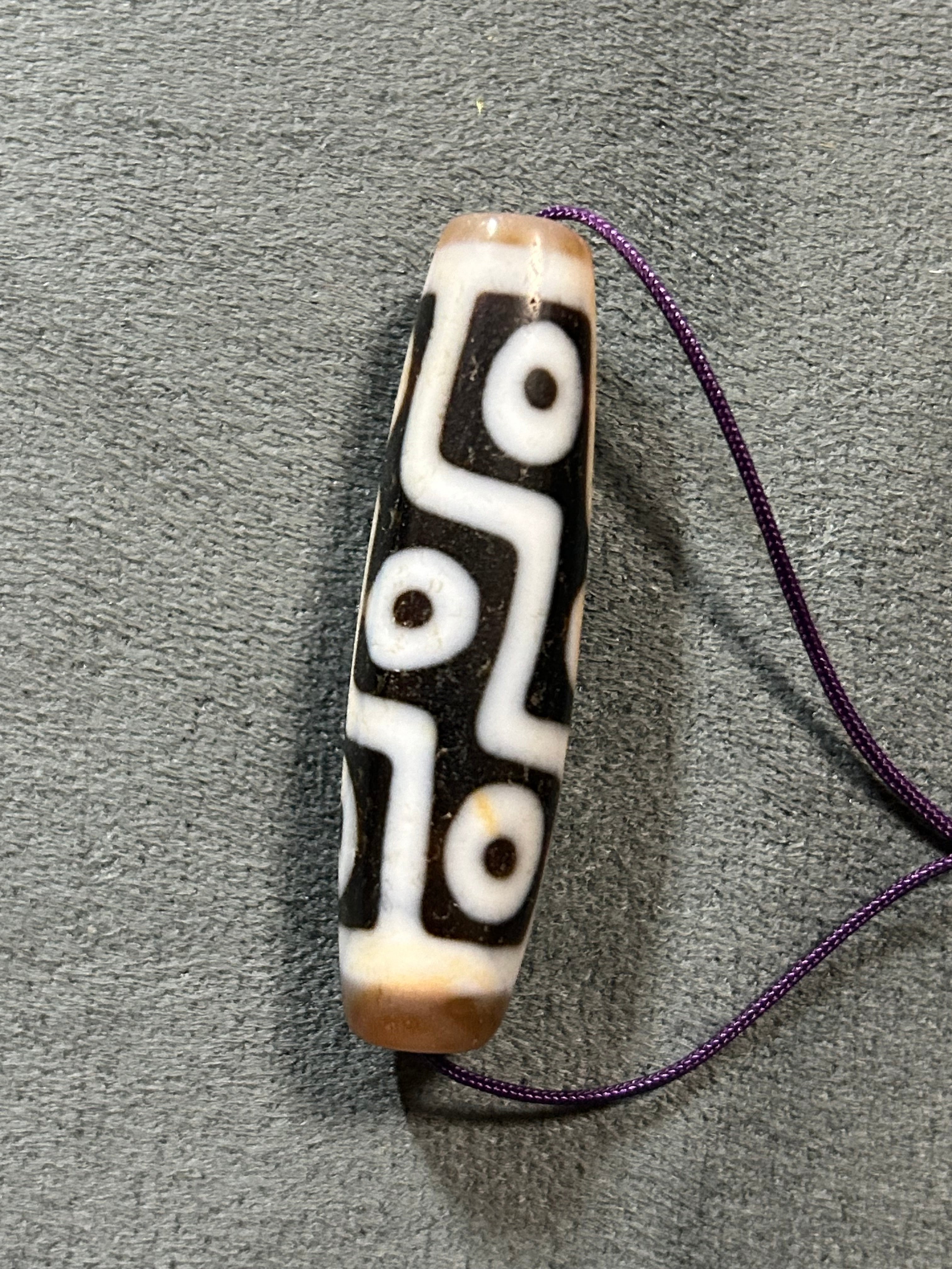 天珠には描かれている模様でいろいろな意味があります。パワーストーンやお守りとしての要素もあります。それぞれの意味や効果などは検索をしてお調べください。