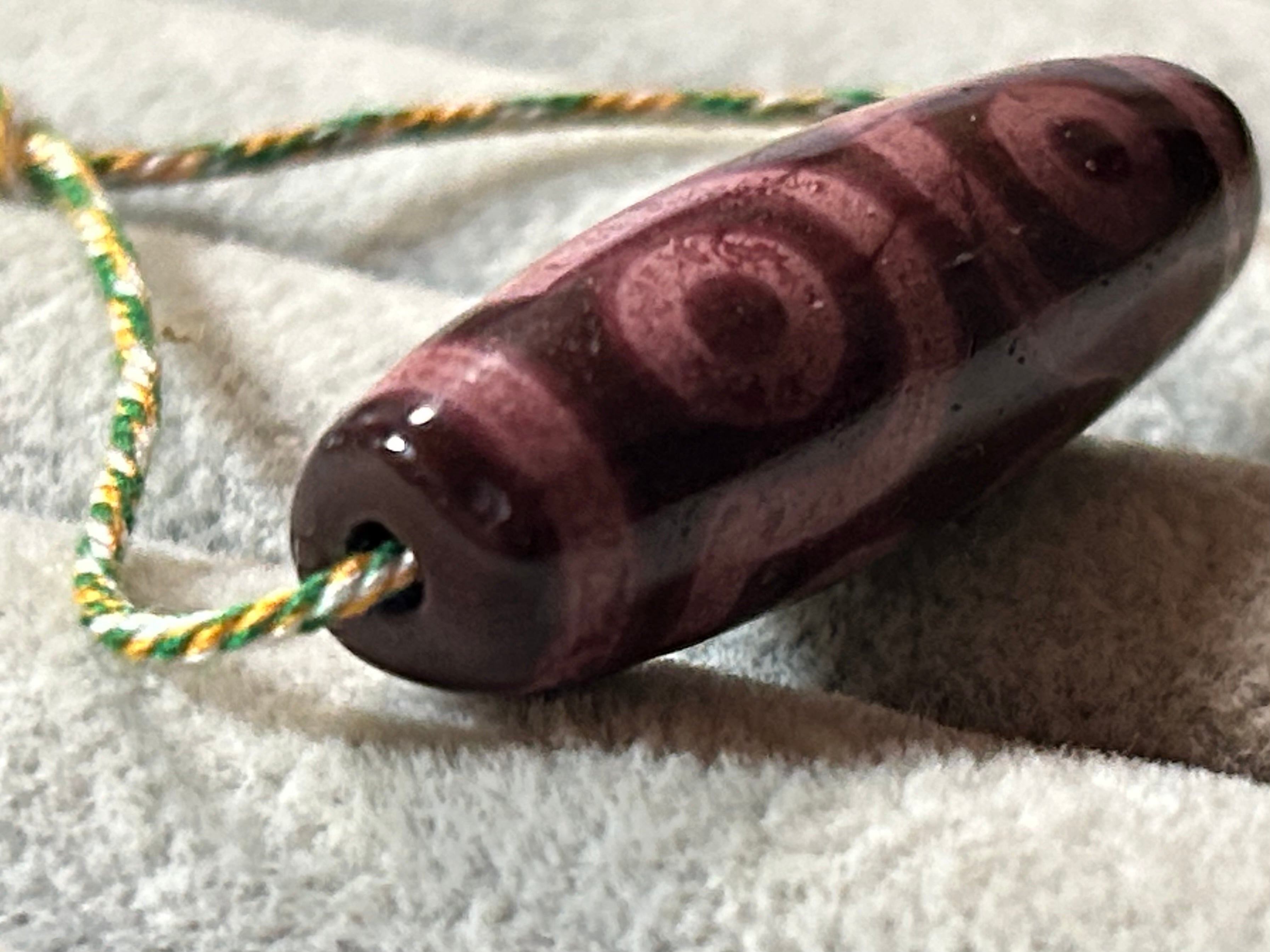 天珠は天然石(瑪瑙 めのう)を加工して作成されていますので、作成過程での傷や汚れ、凹みや石目などある場合もあります。
