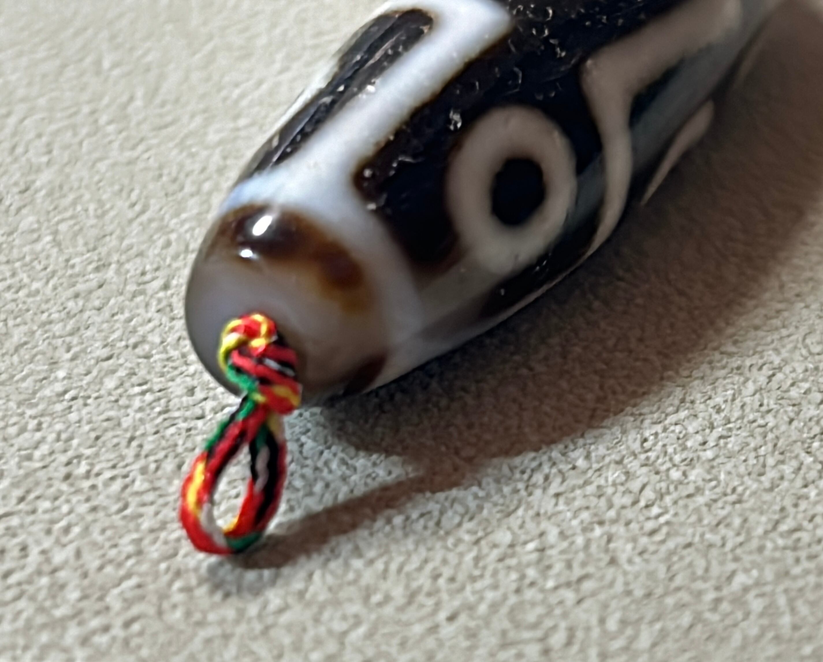 天珠には描かれている模様でいろいろな意味があります。パワーストーンやお守りとしての要素もあります。それぞれの意味や効果などは検索をしてお調べください。