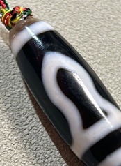 天珠には描かれている模様でいろいろな意味があります。パワーストーンやお守りとしての要素もあります。それぞれの意味や効果などは検索をしてお調べください。