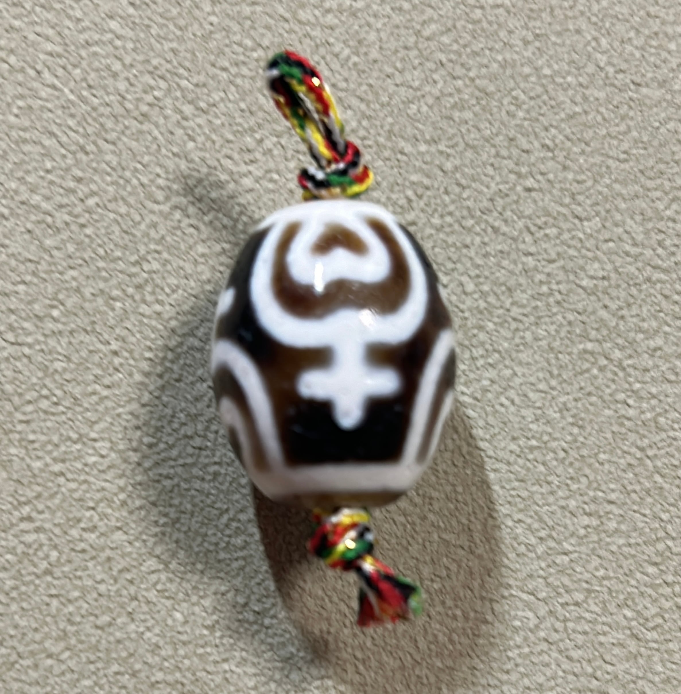 天珠には描かれている模様でいろいろな意味があります。パワーストーンやお守りとしての要素もあります。それぞれの意味や効果などは検索をしてお調べください。