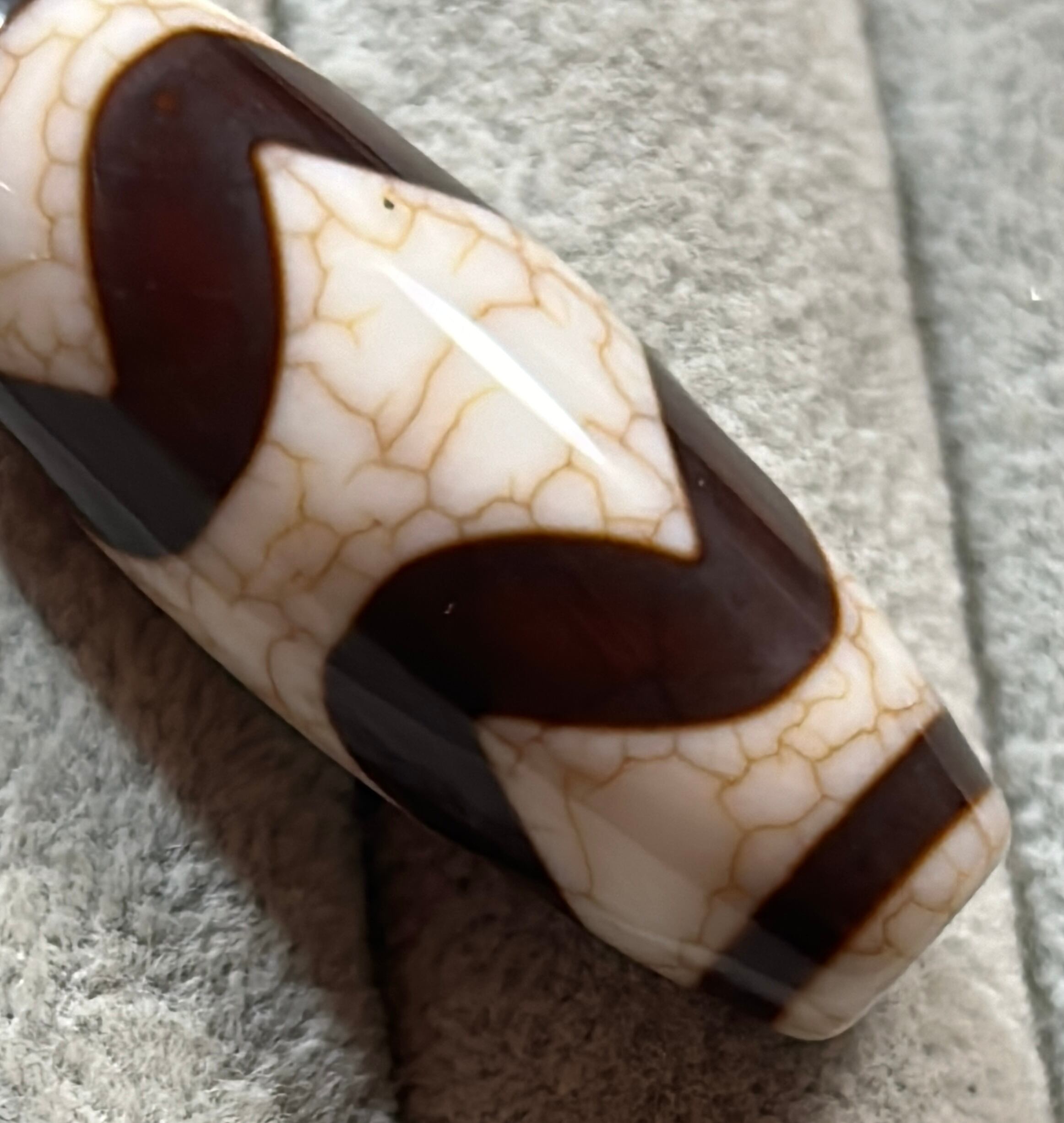 双虎牙天珠 龍紋天珠 四線虎牙天珠 /チベット 天珠 dZi ジービーズ 西蔵