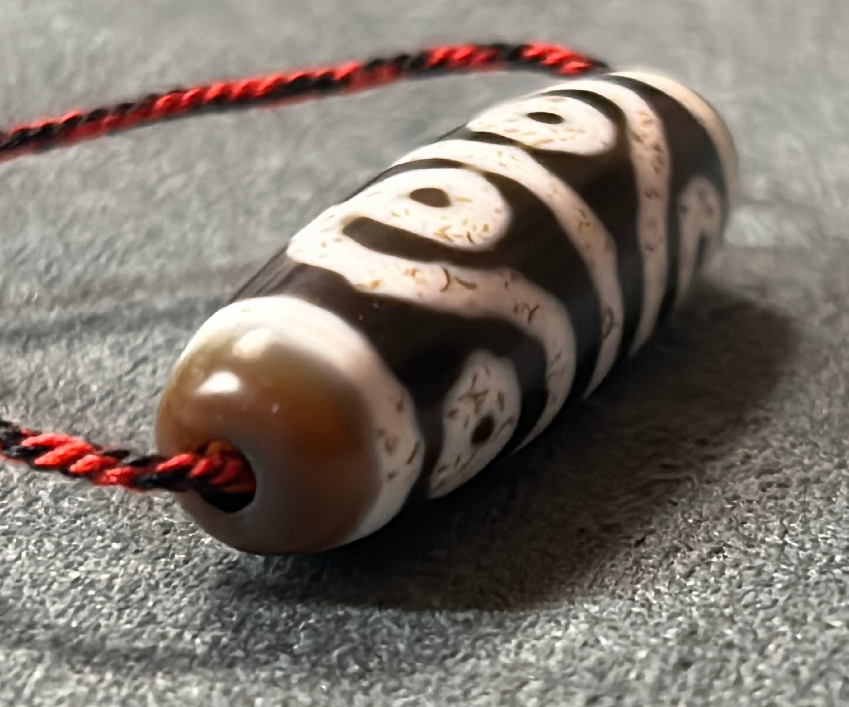 天珠は天然石(瑪瑙 めのう)を加工して作成されていますので、作成過程での傷や汚れ、凹みや石目などある場合もあります。