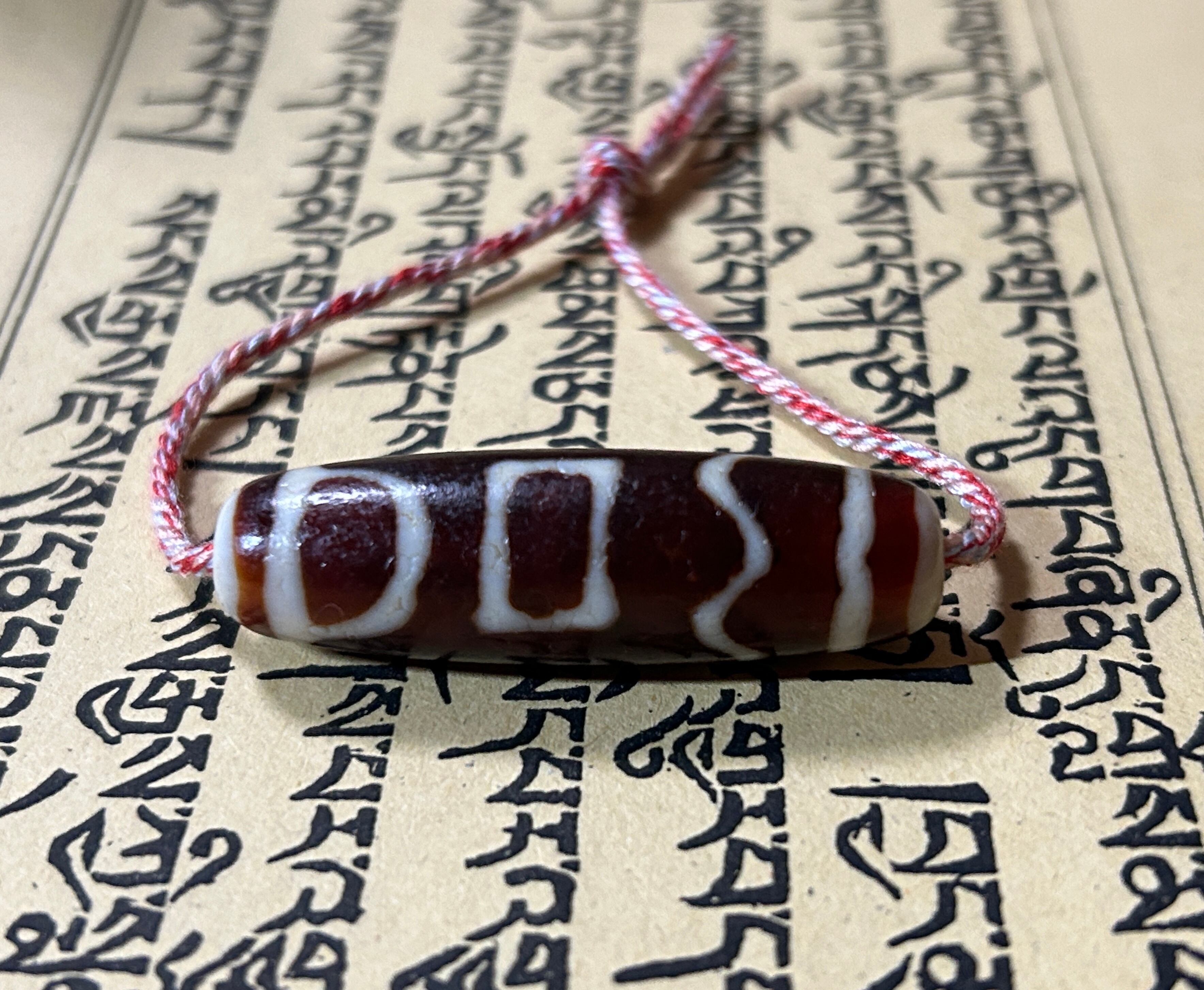 息増懐天珠 蔵語経文 チベット語経文/チベット 天珠 dZi ジービーズ 西蔵