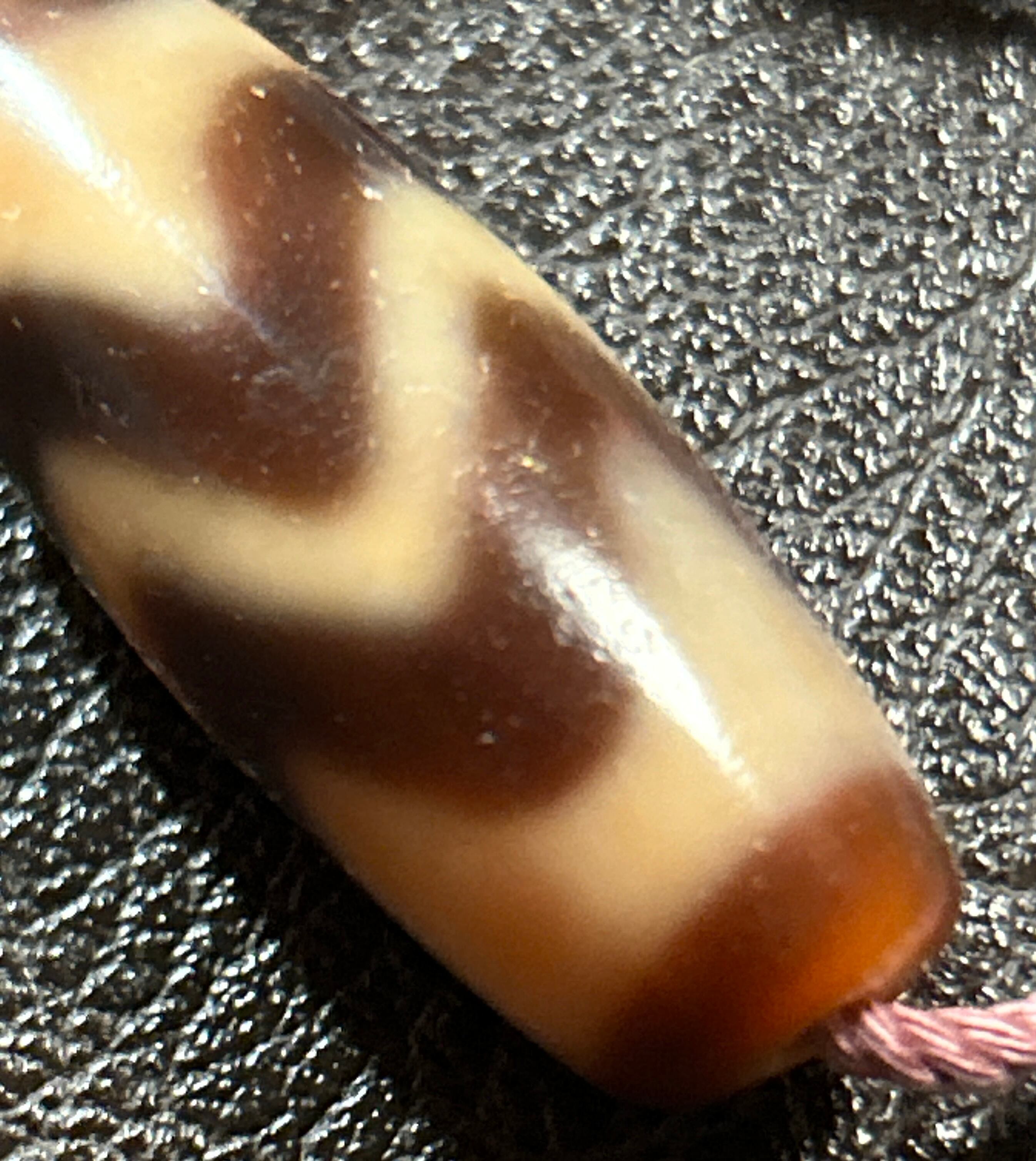 天珠は天然石(瑪瑙 めのう)を加工して作成されていますので、作成過程での傷や汚れ、凹みや石目などある場合もあります。
